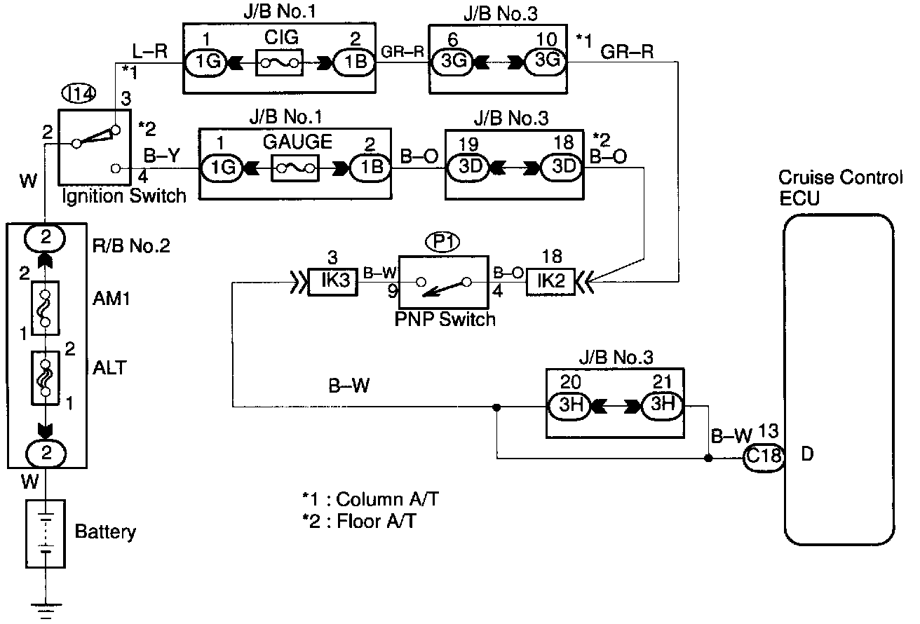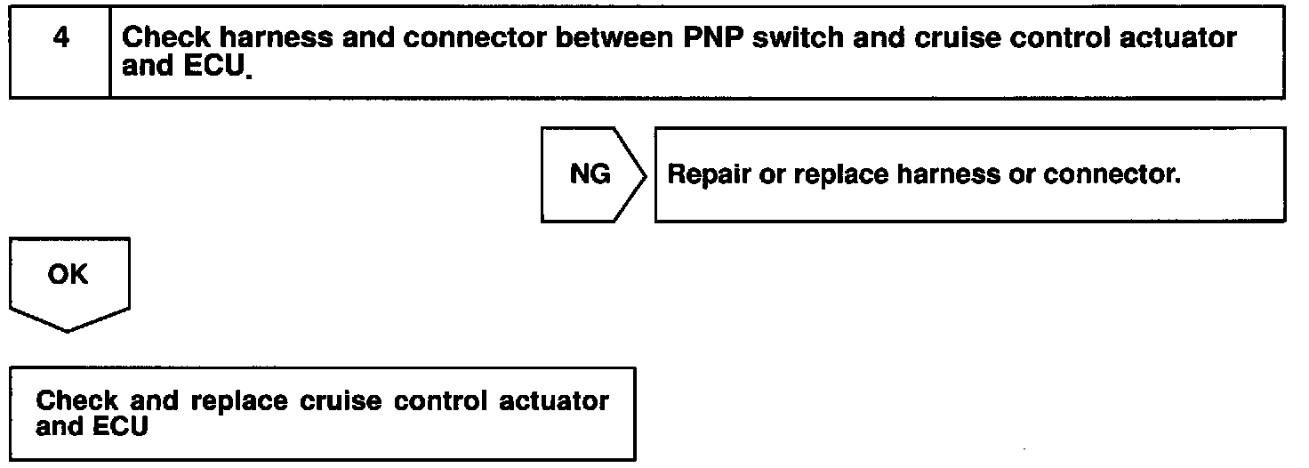 When the shift position is put in positions except D, a signal is sent from the park/neutral position switch to the ECU. When this signal is input during cruise control driving, the ECU cancels the cruise control.