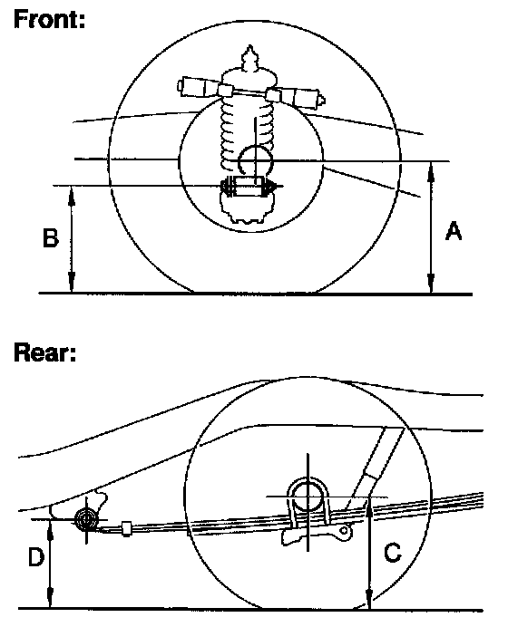 If the vehicle height is not within the specification, try to adjust it by pushing down on or lifting the body.