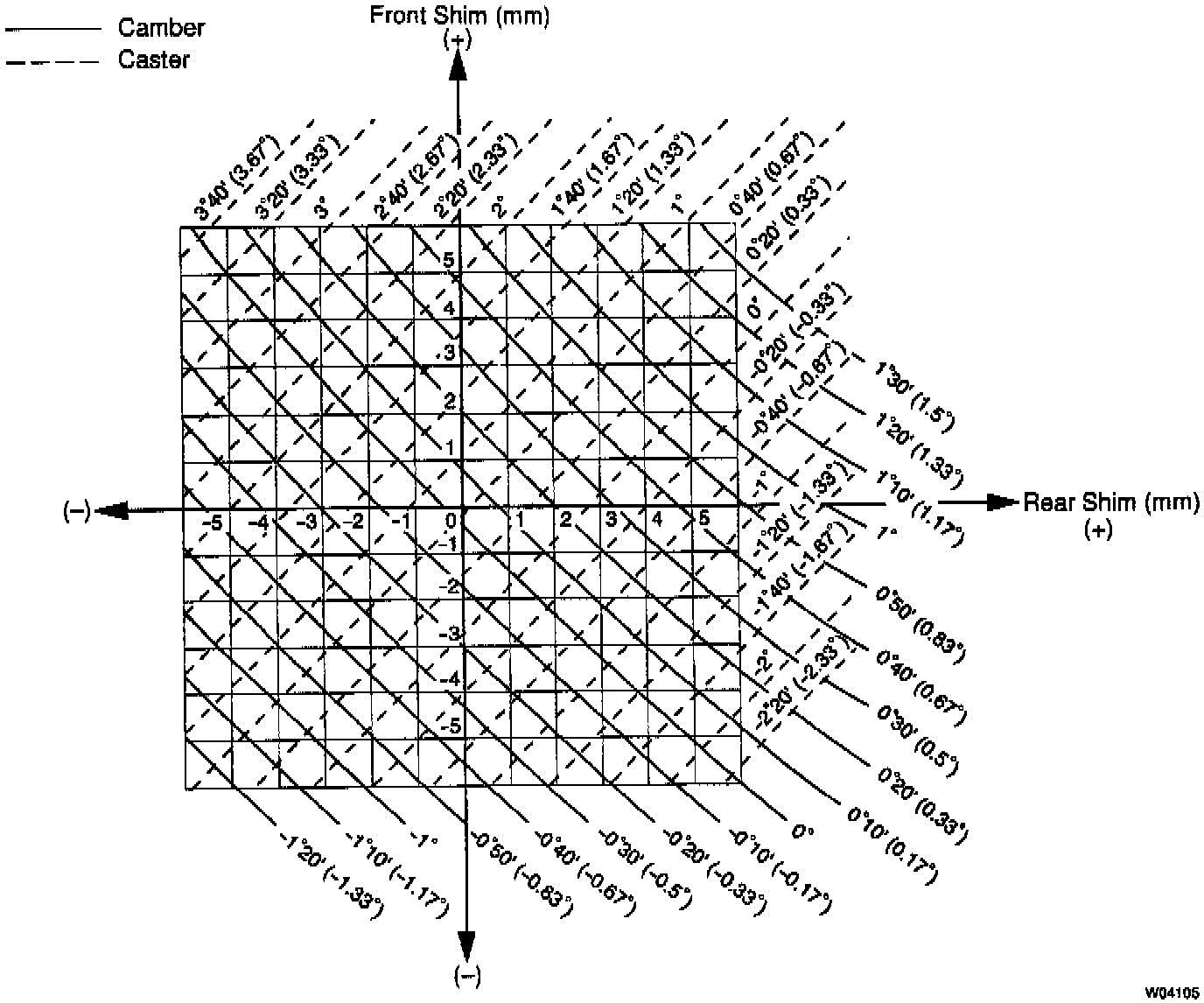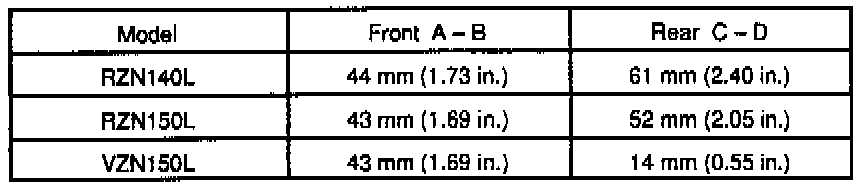 d. As shown in the chart, read the distance from the standard value to the measured value, and adjust the front and/or rear shim thickness accordingly.