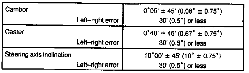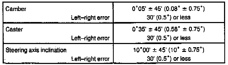 HINT: If the steering axis inclination is not as specified after camber and caster have been correctly adjusted, recheck the steering knuckle and front wheel for distortion or looseness.