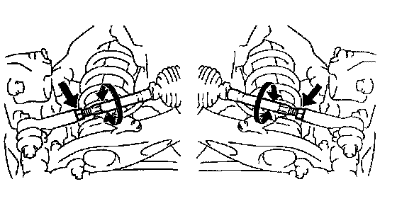 If the wheel angle differ from the standard specifications, check to see if the lengths of the left and right tie rods are the same.