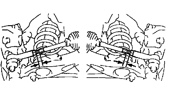c. Turn the left and right rack ends an amount to adjust the toe-in. Tie rod end length left-right error: Less than 1.5 mm (0.059 inch)