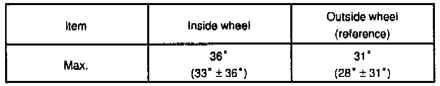 If the steering axis inclination is not within the specification, after camber and caster have correctly adjusted, recheck the steering knuckle front wheel for bearing or looseness.