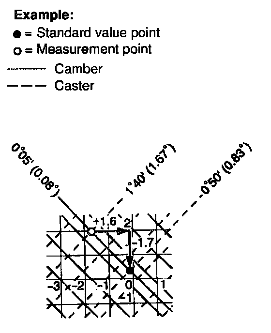 c. Mark on the adjustment chart the alignment values measured at the non-loaded vehicle height.