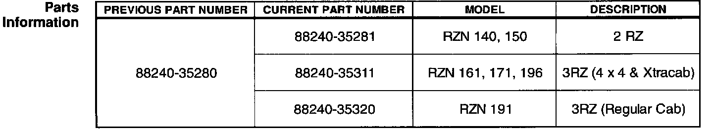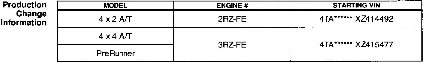 1998 - 1999 (4 cylinder) Tacoma Trucks with automatic transmissions produced before the VIN's listed in the illustration.
