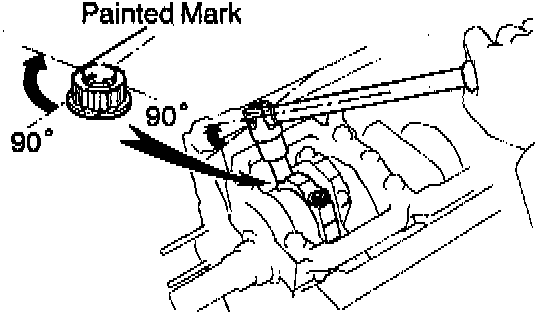 d. Retighten the connecting rod cap nuts 90° as shown.