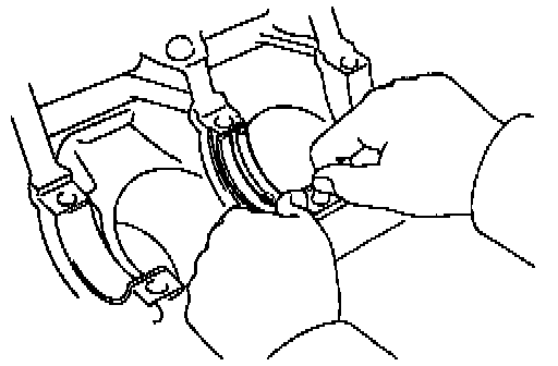 b. Using a piston ring compressor, push the correctly numbered piston and connecting rod assemblies into each cylinder with the front mark of the piston facing forward.