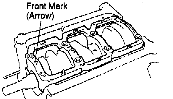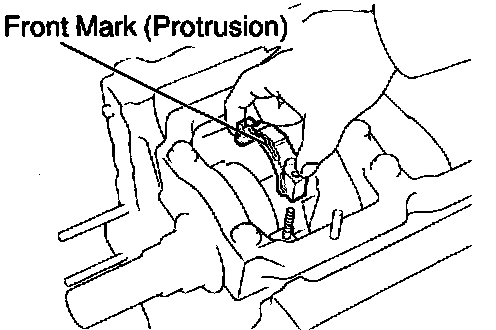 b. Install the main bearing cap with the front mark facing forward.