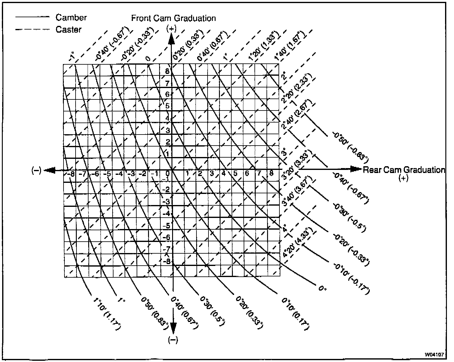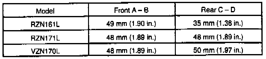 d. As shown in the chart, read the distance from the standard value to the measured value, and adjust the front and/or rear adjusting cams accordingly.