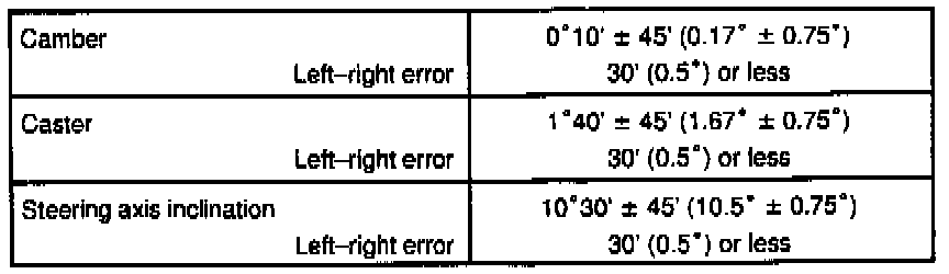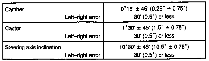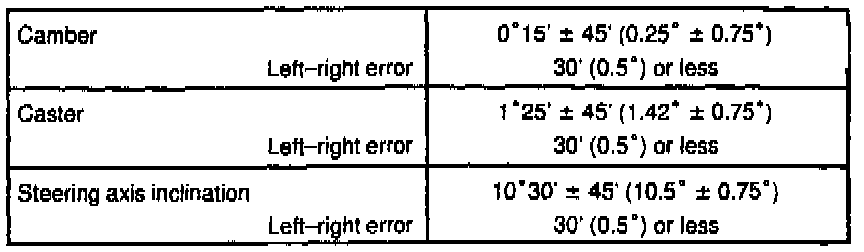 If the steering axis inclination is not within the specification, after camber and caster have correctly adjusted, recheck the steering knuckle front wheel for bearing or looseness.