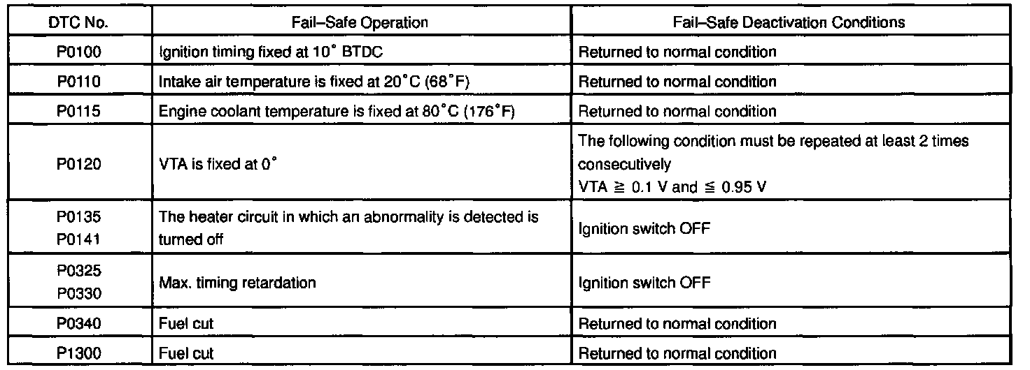 If any of the above codes are recorded, the ECM enters fail-safe mode�0m.