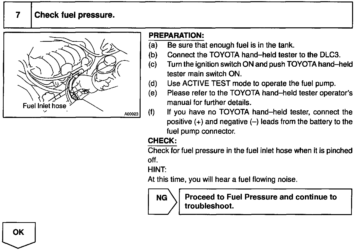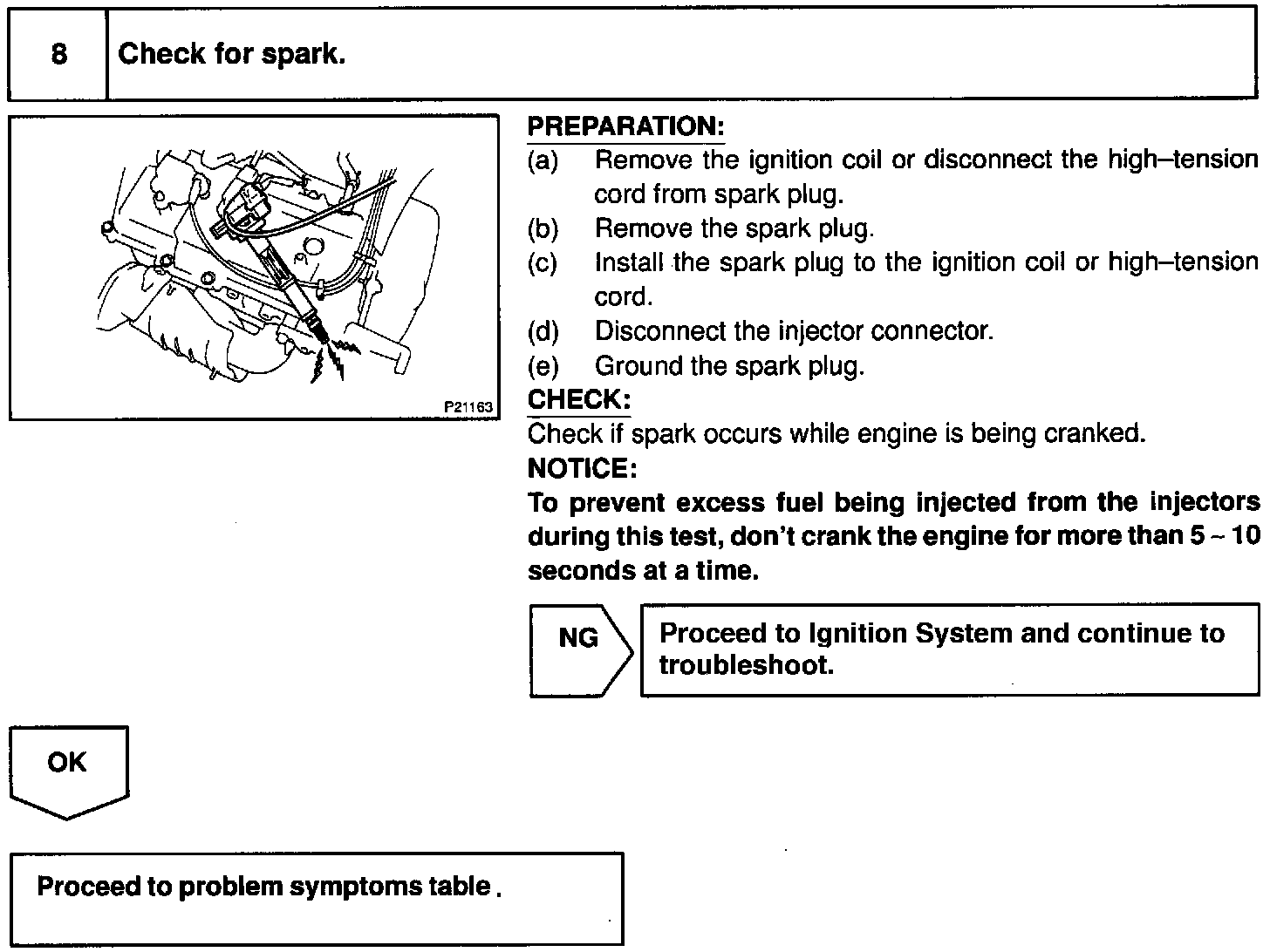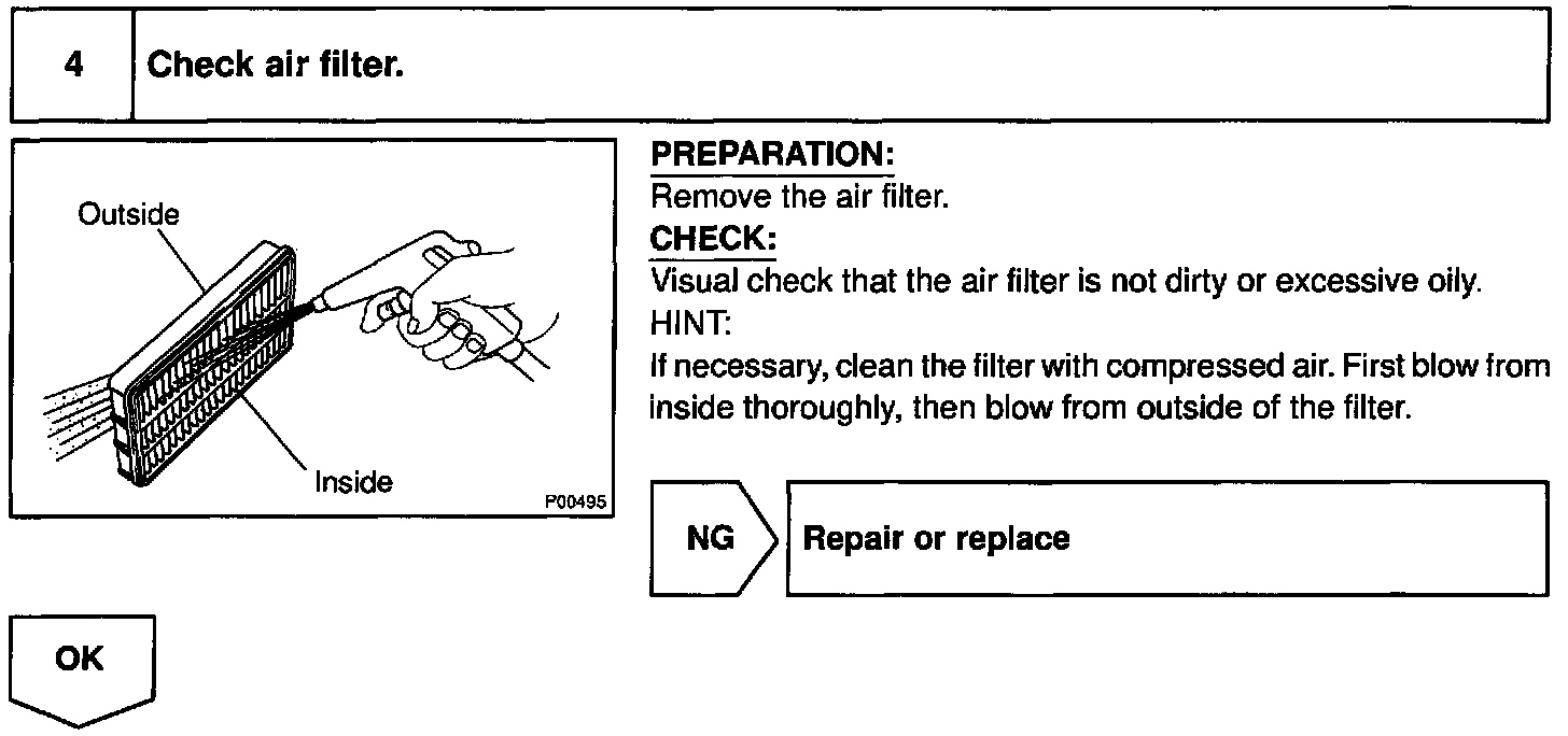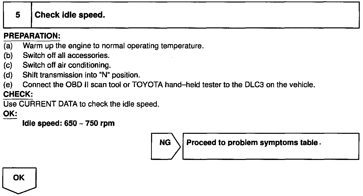 When the malfunction code is not confirmed in the DTC check, troubleshooting should be performed in the order for all possible circuits to be considered as the causes of the problems. In many cases, by carrying out the basic engine check shown in the above flow chart, the location causing the problem can be found quickly and efficiently. Therefore, use of this check is essential in engine troubleshooting.