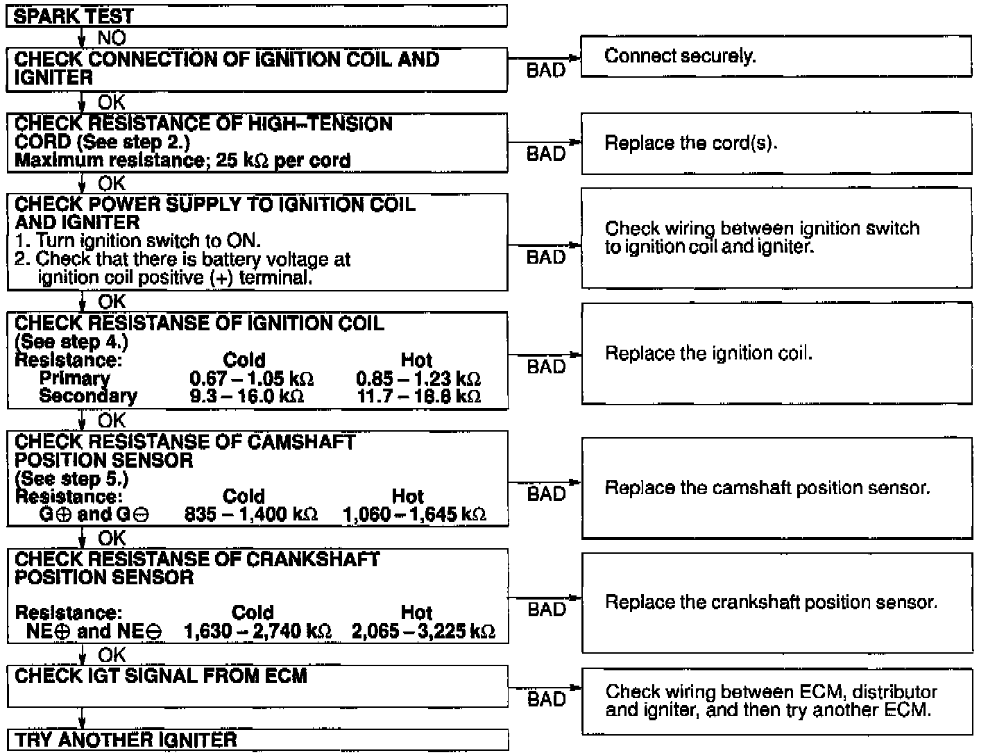 If the spark does not occur, do the test shown above.