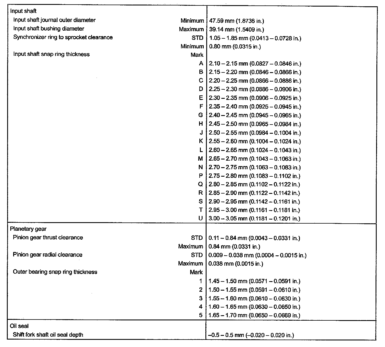 T/F Technical Data