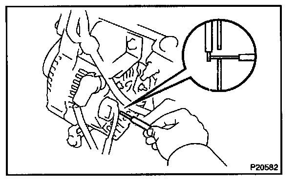 ^ After installing a new belt, run the engine for approx. 5 minutes and then recheck the tension.