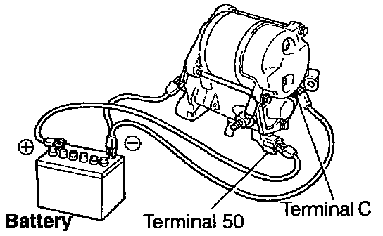 With battery connected as above with the clutch pinion gear out, disconnect the negative (-) lead from terminal C.