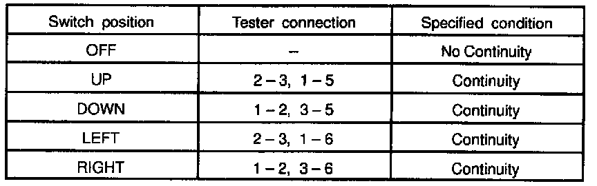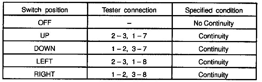 INSPECT MIRROR SWITCH CONTINUITY