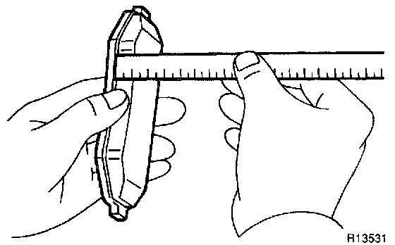 Using a ruler, measure the pad lining thickness.