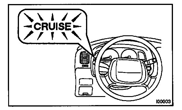 HINT: If a malfunction occurs in the No. 1 vehicle speed sensor or actuator, etc. during cruise control driving, the ECU actuates AUTO CANCEL of the cruise control and turns on and off the CRUISE MAIN indicator light to inform the driver of a malfunction. At the same time, the malfunction is stored in memory as a DTC.