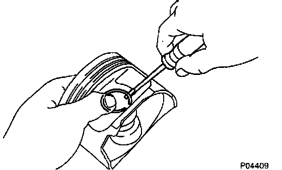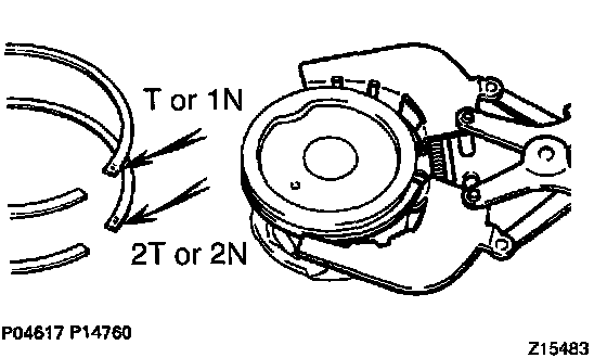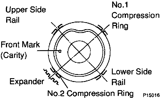 b. Using a piston ring expander, install the 2 compression rings with the code mark facing upward.