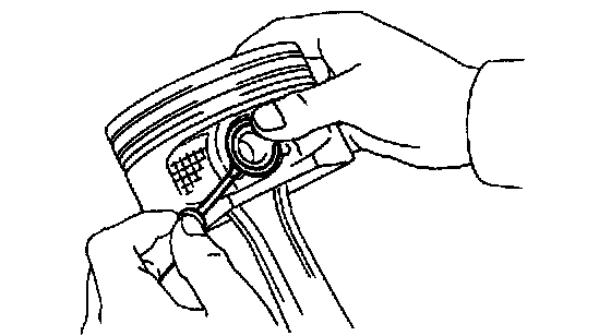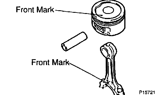 d. Align the front marks of the piston and connecting rod, and push in the piston pin with your thumb.