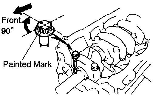 d. Retighten the connecting rod cap nuts 90° as shown.