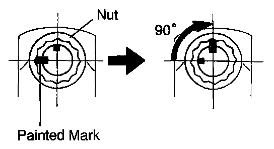 e. Check that the painted mark on the nut is at a 90° angle in relation to the mark on the bolt.