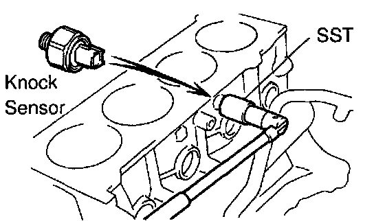 Using Special Service Tool (SST), remove the knock sensor.