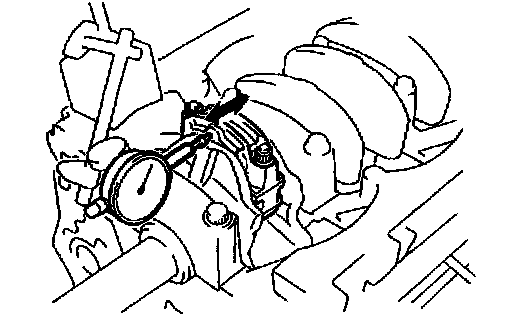 Using a dial indicator, measure the thrust clearance while prying the crankshaft back and forth with a screwdriver.