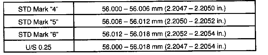 Cylinder block main journal bore diameter: