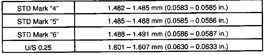 Standard thrust clearance: 0.160 - 0.312 mm (0.0063 - 0.0123 inch)