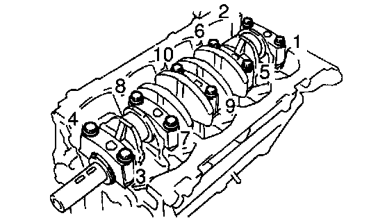 a. Uniformly loosen and remove the main bearing cap bolts, in several passes, in the sequence shown.