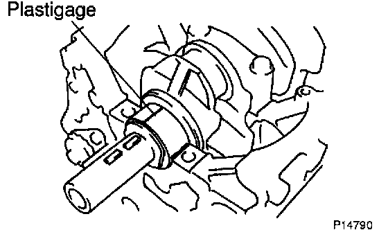 g. Lay a strip of Plastigage across each journal.