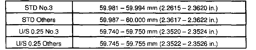 Crankshaft journal diameter: