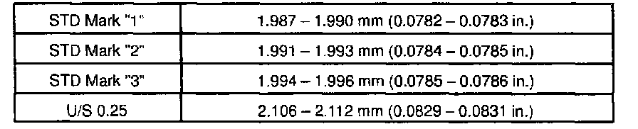 Thrust washer thickness: 2.440 - 2.490 mm (0.0961 - 0.0980 inch)