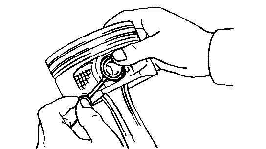 Try to move the piston back and forth on the piston pin. If any movement is felt, replace the piston and pin as a set.
