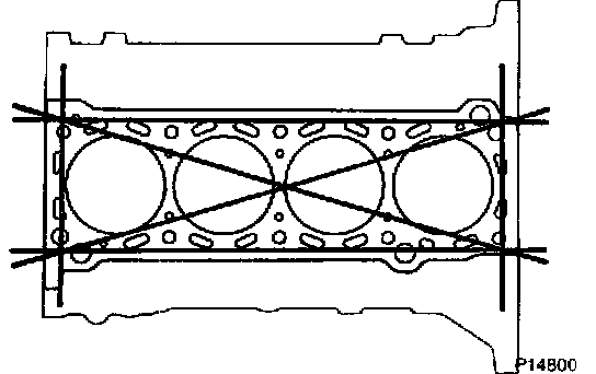 Using a precision straight edge and thickness gauge, measure the surfaces contacting the cylinder head gasket for warpage.