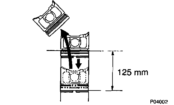 b. Using a piston, push the piston ring a little beyond the bottom of the ring travel, 125 mm (4.92 inch) from the top of the cylinder block.