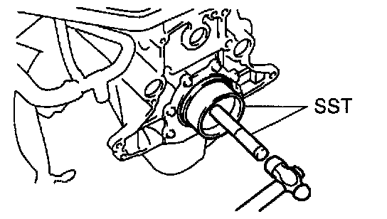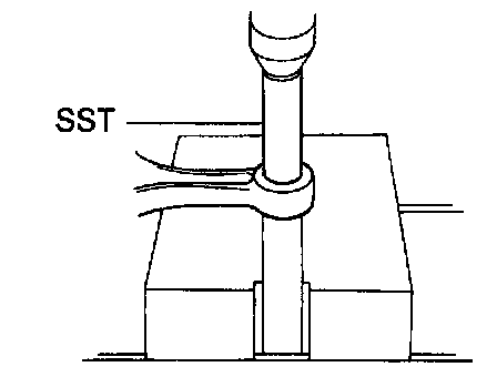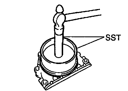 2. Using Special Service Tool (SST) and a hammer, tap in a new oil seal until its surface is flush with the oil seal retainer edge.