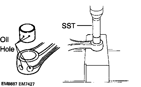 b. Align the oil holes of a new bushing and the connecting rod.