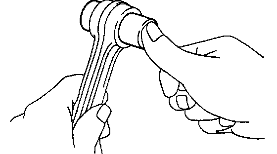 e. Check the piston pin fit at normal room temperature. Coat the piston pin with engine oil, and push it into the connecting rod with your thumb.