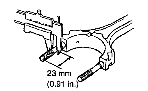 b. If the cap nut cannot be turned easily, measure the minimum outside diameter of the connecting rod bolt with vernier calipers.