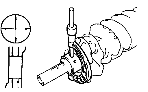 b. Check each main journal and crank pin for taper and out-of-round as shown.