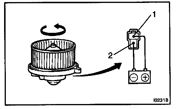 Connect the positive (+) lead from the battery to terminal 1 and the negative (-) lead to terminal 2, then check that the motor operations smoothly.