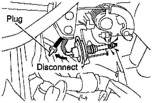 (c) Disconnect the vacuum hose from the throttle opener and plug the hose end.