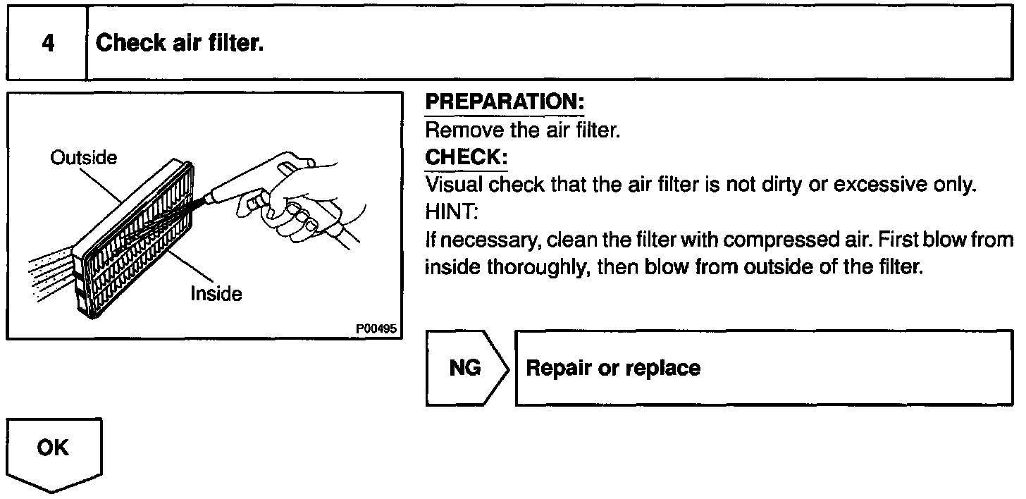 When the malfunction code is not confirmed in the DTC check, troubleshooting should be performed in the order for all possible circuits to be considered as the causes of the problems. In many cases, by carrying out the basic engine check shown in the above flow chart, the location causing the problem can be found quickly and efficiently. Therefore, use of this check is essential in engine troubleshooting.