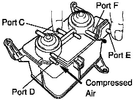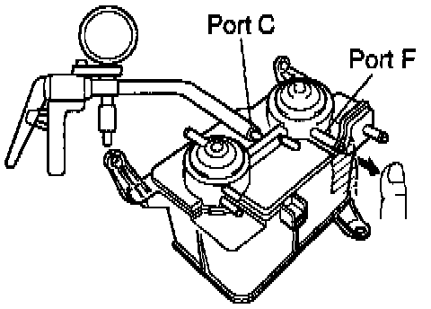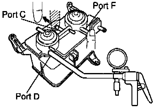 (e) While holding port F closed, apply vacuum (2.94 kPa, 22 mm Hg, 0.87 in.Hg) to port D,check that the vacuum does not decrease when port C is closed and check that the vacuum decreases when port C is released.