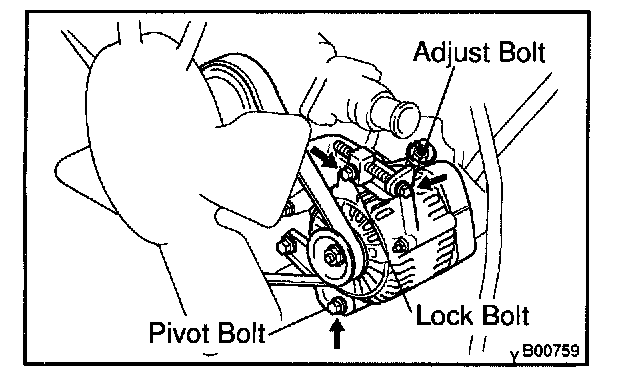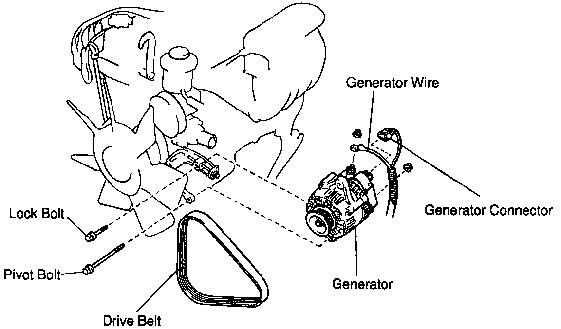 d. Remove the lock bolt, pivot bolt, nut and generator.