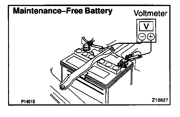c. Measure the battery voltage between the negative (-) and positive (+) terminals of the battery.