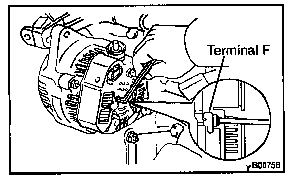 ^ With terminal F grounded, start the engine and check the voltmeter reading of terminal B.
